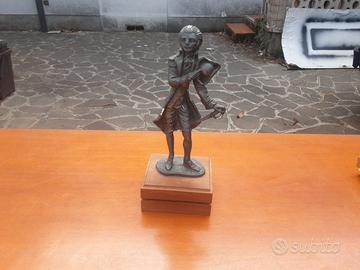 Statuetta in peltro inciso a mano, con base in legno. A Cremona o spedizione.