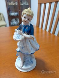 Statuetta in porcellana Capodimonte, con il marchio "Made in Japan ", oggetto da collezione vintage. La statuina conosciuta anche come "Girl Feeling Ducks "(ragazza che nutre le anatre), raffigura una giovane ragazza di fattoria, prodotta da Goebel. Misura altezza 18 cm .