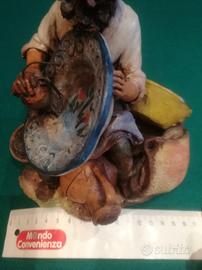 Statuetta in terracotta artigianale, Artigiano che lavora piatto, sotto c'è un anfora una cesta e due piatti, non rovinata non scheggiata non rotta. Zona Monteverde Roma