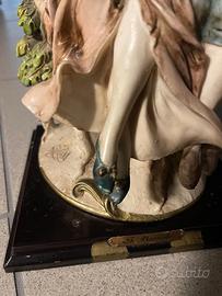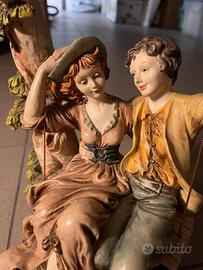 Elegante statuetta in porcellana fatta a mano collezione Miriam. Coppia di innamorati su altalena. Misure base 21x17, altezza 39 cm.