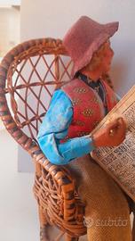 statuetta fine anni 70 comprata in Francia completa di sedia in vimini. usure del tempo,