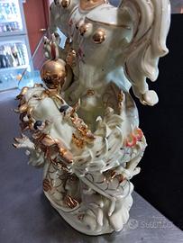 Vendo elegante statuetta decorativa in stile orientale raffigurante cavallo rampante con draghi, realizzata in resina con finitura effetto giada e dettagli dorati lucidi.