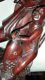 Bella statuetta orientale intagliata in palissandro del XIX secolo raffigurante un pescatore H cm. 30, la scultura ha la patinatura originale e presenta piccolissimi segni del tempo dovuti principalmente all'invecchiamento.