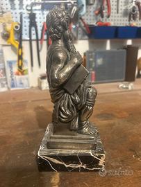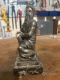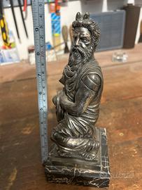riproduzione del celebre Mosè di Michelangelo. Rappresenta il profeta biblico Mosè seduto con le tavole della legge. realizzata in lega metallica placcata in argento. La statua è posizionata su una base di marmo con una placchetta recante il nome "MOSÈ". È una replica del capolavoro originale conservato nella chiesa di San Pietro in Vincoli a Roma.