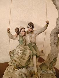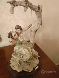 grande statuetta di porcellana ( circa 36 x 45 cm.) su base in legno, firmata Scaggiari da collezione.