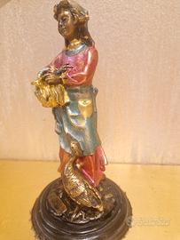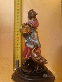 Statuetta vintage in metallo (bronzo o lega pesante) – pezzo unico dipinto a mano