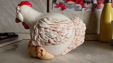 Statuetta dal design elaborato raffigura una chioccia circondata da pulcini, aggiungendo un tocco di nostalgia a qualsiasi ambiente.