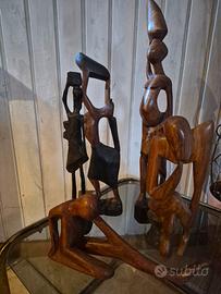 Set di oggetti decorativi in legno dallo stile tribale. Perfetti per aggiungere un tocco etnico alla tua casa. - Realizzati in legno intagliato. - Diverse figure stilizzate. - Base stabile per ogni pezzo.