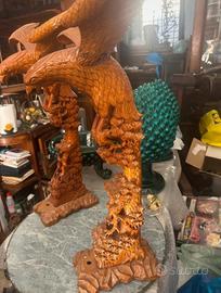 Coppia di falchi scolpiti in legno, lavorazione artigianale. Dettagli curati e ottima resa decorativa. Perfetti per amanti dell'arte etnica, rustica o per dare un tocco unico a qualsiasi ambiente.