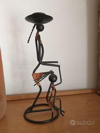‐statuetta artigianale di fioraia fatta a mano con originale lavorazione in metallo, alta circa 20 cm;