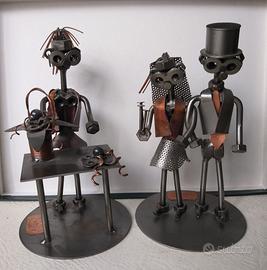 ‐statuetta artigianali di coppia di sposi fatta a mano con originale lavorazione in metallo, alta circa 20 cm;