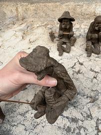 Quattro statuette fatte a mano con dettagli in legno provenienti da Capo Verde. Ottime anche per presepe. Altezza 12 cm circa
