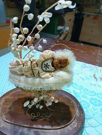 La culla è decorata con fiori di mughetto (simbolo di purezza)