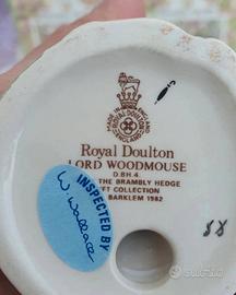 Statuina del topino 🐀Lord Woodmouse🐀, personaggio delle storie di 🐀 Brambly Hedge🐀 ( Boscodirovo) della scrittrice inglese Jill Barklem. Figurina e' stata realizzata dalla 👑Royal Doulton👑, designer Harry Sales, modellata dall'artista David Lyttleton, anno 1982, periodo di produzione 1983- 1997 , porcellana, made in Inghilterra🇬🇧. Altezza~ 8,3 cm. Condizioni ottime.