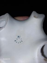 Statuina in porcellana pregiata riconducibile alla tradizione napoletana di Capodimonte. Raffigura donna con cesto di fiori.