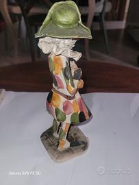 Italian Pottery Decorative Pair Figures/Figurines arlecchino vendo come foto H 23cxm circa Base 8.5 cm circa