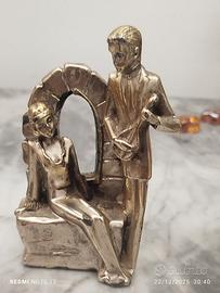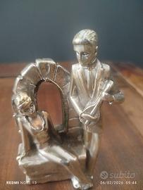 Statuina fermacarte in argento 925 e metallo vintage. Rappresentante due innamorati. Pesa in totale 704 grammi. Solo esposta.