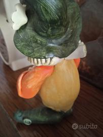 Design:La statuina ha un design stravagante e kitsch, con un grande cappello verde floscio e una gorgiera bianca e gialla arruffata attorno al collo.