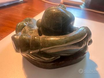 Statuina im giada verde scuro raffigurante budda seduto sorridente Giada birmana Perfetto stato H cm 7 lUngo cm 9