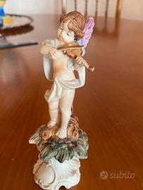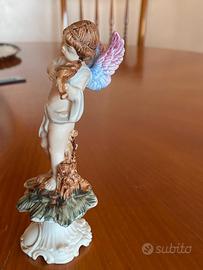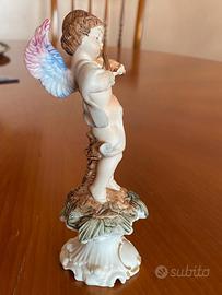Vendo raffinata statuina vintage in pregiata porcellana, raffigurante un romantico angioletto (putto) intento a suonare il violino. Un oggetto dallo stile classico, che ricorda le celebri manifatture di Capodimonte. Caratteristiche e Dettagli: Lavorazione: Finemente dipinta a mano con delicati colori pastello (stupende le ali sfumate in azzurro e rosa). Finiture: L'incarnato dell'angioletto ha una finitura opaca (stile biscuit), mentre i drappeggi e il basamento sono lucidi e impreziositi da eleganti dettagli in oro zecchino. Condizioni: Perfette. L'oggetto è stato conservato con grande cura, è totalmente integro in ogni sua piccola parte (ali, dita, archetto del violino) e privo di sbeccature. Un bellissimo complemento d'arredo per vetrinette o come idea regalo per chi ama l'oggettistica classica e romantica. Ritiro a mano a Torino (zona Santa Rita) oppure spedizione tracciata e sicura in tutta Italia tramite TuttoSubito, con imballaggio estremamente protettivo. Disponibile per altre foto Prezzo trattabile