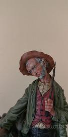 Bellissima statuina in porcellana dipinta a mano raffigurante una vecchio contadino con l’asinello. Scena campestre resa con grande realismo e ottimi dettagli pittorici che ne testimoniano la lavorazione artigianale confermata dal marchio della “N coronata” tipico dei laboratori di porcellana italiana di Capodimonte e più precisamente con molta probabilità realizzata dalla ditta marsalese Nino Sparta intorno agli anni ‘70.