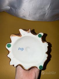 Sul fondo è presente un marchio blu sottosmalto (visibile in foto), tipico della manifattura tedesca di inizio/metà Novecento, probabilmente Sitzendorf o produzione simile in stile Dresden/Capodimonte Pezzo elegante e decorativo, ideale per collezionisti o amanti delle porcellane vintage