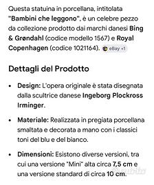 Oggetto iin porcellana della Royal Copenhagen intitolata “Bimbi che leggono”la misura di questa statuina è di 10 cm