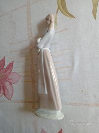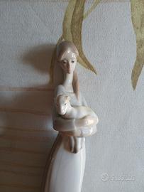 Splendida statuina originale Lladro (Valencia, Spagna) interamente realizzata e dipinta a mano. Il pezzo raffigura una graziosa pastorella che stringe un agnellino, un classico intramontabile del design spagnolo.