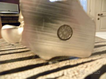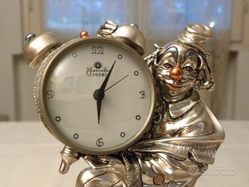 Vendo statuina Marcello Giorgio clown/pagliaccio, con orologio, laminato argento, proveniente da un negozio di antiquariato