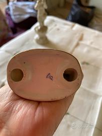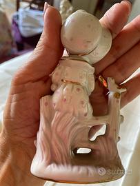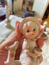 Bellissima e raffinata statuina in porcellana Minton, un'azienda inglese fondata da Thomas Minton nel 1756, raffigurante una bimba seduta su una staccionata che guarda un uccellino, con rifiniture in oro zecchino.