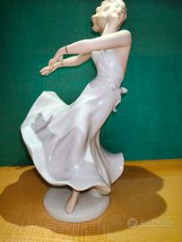 L'opera raffigura una ballerina in una splendida posa dinamica con abito bianco. È un oggetto vintage, molto elegante, ideale per arricchire una collezione di porcellane o come complemento d'arredo classico.