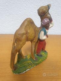 Statuina del presepe in cartapesta - cammelliere con cammello. Altezza 11 cm. Condizioni come da foto