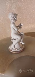 Statuina Putto con Uccellino in Porcellana