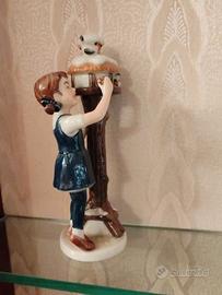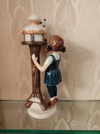 Vendo elegante statuina in porcellana dipinta a mano, raffigurante una bambina che nutre degli uccellini in una casetta invernale.