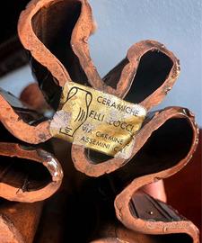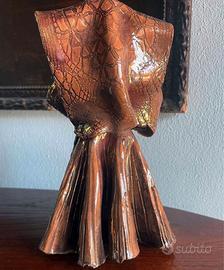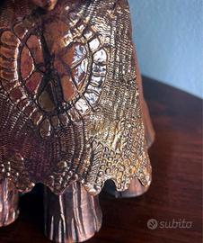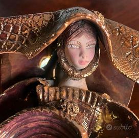 Statuina vintage raffigurante una donna in tipico costume sardo; i colori sono molto belli e brillanti e spaziano dal rame all'oro. Sul fondo è ancora presente l'etichetta originale del produttore: Ceramiche dei Fratelli Locci di Assemini. Purtroppo presenta una rottura nel velo che le copre il capo, sulla sinistra, per questo motivo viene venduta a un prezzo irrisorio rispetto al suo reale valore. Misura circa 21 cm di altezza e 12 di larghezza. #madeinitaly #locciceramiche #assemini #artigianatoitaliano #vintage #bbitalianartvintage