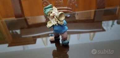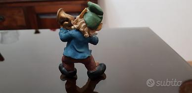 Vendo graziosa statuina raffigurante uno gnomo musicista con tromba, realizzata in resina dipinta a mano. Oggetto decorativo curato nei dettagli, ideale per arredare casa, mensole o vetrinette, oppure come idea regalo. Lo gnomo presenta cappello verde, barba bianca e abbigliamento colorato, in posa mentre suona uno strumento musicale. Altezza: circa 10cm. Colori vivaci e dettagli realistici. Senza scatola originale.