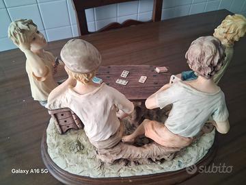 Statua originale CAPODIMONTE rara raffigurante 4 ragazzi che giocano a carte. Pezzi unico Condizioni eccellenti