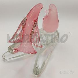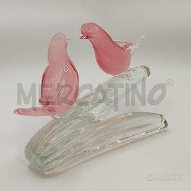 STATUINA UCCELLINI ROSA SUL RAMO 22X16X23CM CONDIZIONI OTTIME