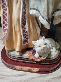 Statuina vintage fatta e dipinta a mano, nobildonna 1800 con gattino e tavolino con vari dettagli. Circa 25 cm, simil Capodimonte