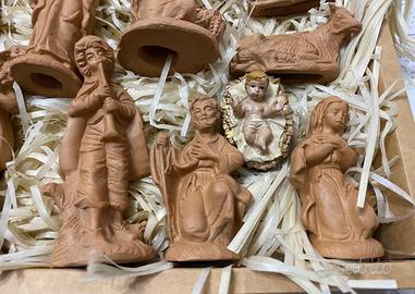 Vendo 12 Statuine artigianali, personaggi del presepe in terracotta grezza. I personaggi possono essere utilizzati così come sono, per un presepe particolare o potete personalizzarli/colorarli a piacimento. Le statuine raffigurano: Giuseppe, Maria, Gesù, i Re Magi, un pastore con pecora, una pecora, un pastore che suona la ciaramella, Bue, Asinello e un putino. Previa accordi, è possibile ritirare gli oggetti a Latina o Roma.