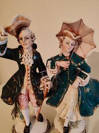 Si tratta di una coppia di statuine in porcellana, raffiguranti una dama e un gentiluomo in abiti del XVIII secolo.