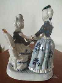 composizione di damine in porcellana bianca blu e oro, nessun difetto