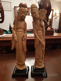 coppia di statuine originali orientali la figura femminile presenta una piccola crepa a livello del collo