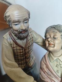 Statuine di Gianni Visentin i porcellana biscuit intitolato "Nonni". Con certificato di origine Collezione Richelieu, decorato a mano in edizione limitata di 500.