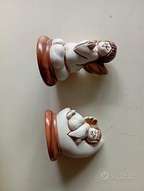 in ceramica con base in legno di olivo firmate dal produttore.impeccabili