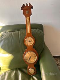 - Stazione meteo analogica classica a forma di sheraton in legno massello, con barometro, termometro, igrometro e orologio.