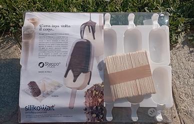 set composto da 2 stampi in silicone per 12 stecchi gelato o semifreddi un vassoio 50 bastoncini di legno