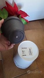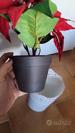 Stella di Natale artificiale con 3 fiori rossi, alta 25 cm, diametro 15 cm, montata su vaso alto 9 cm diametro 11 cm. Vendesi corredata di sottovaso bianco di alluminio Ikea.