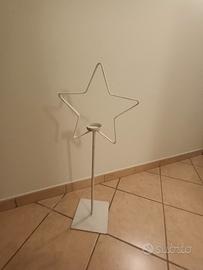 Stella portacandela in ferro verniciato bianco, cm 20x20, altezza cm 80, tenuta perfettamente