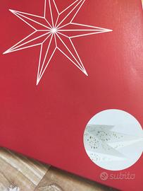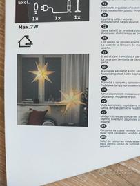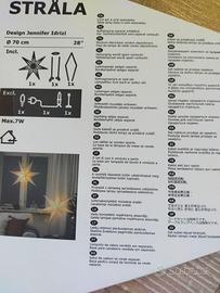 Paralume a forma di stella in cartone, stile origami, modello Strala dell'Ikea designed by Jennifer Idrizi. Diametro 70 cm, colore bianco. Da appendere o da usare come abatjour (piedistallo e luci non incluse).